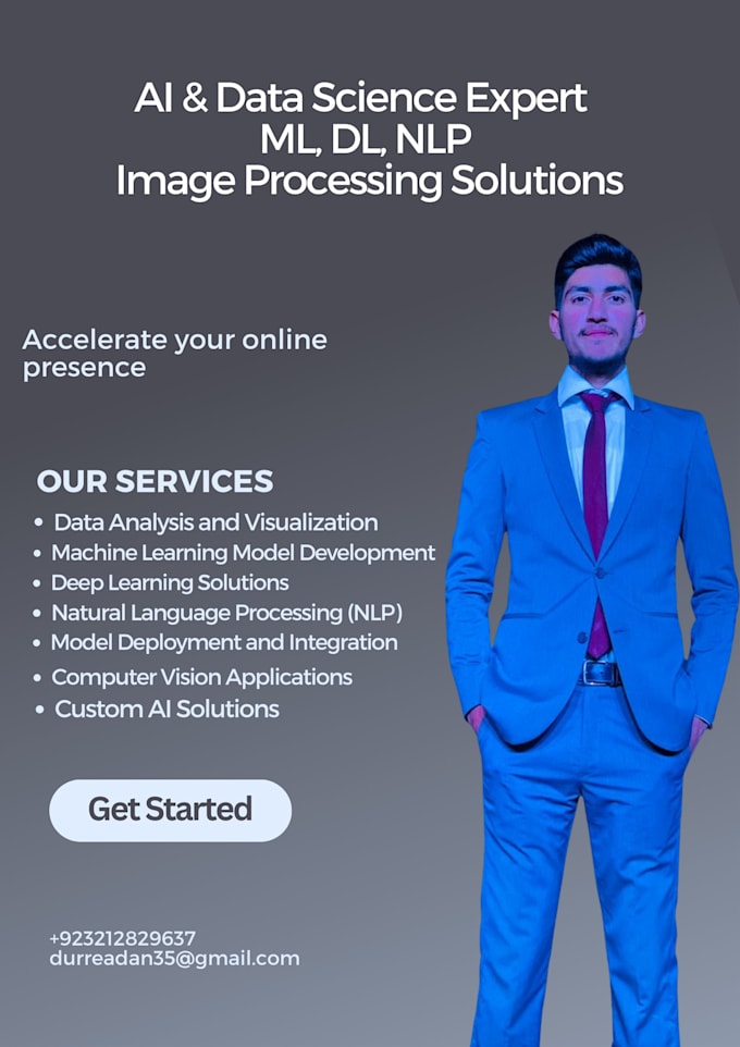 Ready to maximize the value of your data? I am an experienced data scientist providing complete AI and data science services customized for specific requirements. With solid expertise in Machine Learning, Deep Learning, Image Processing, and Natural Language Processing (NLP), I can assist with: