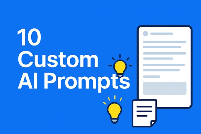 I will design 10 high-performing prompts specifically tailored to your niche and goals, allowing the AI to function as your personal assistant or marketing expert, ideal for entrepreneurs, content creators, and small business owners seeking to save time and achieve superior AI results.