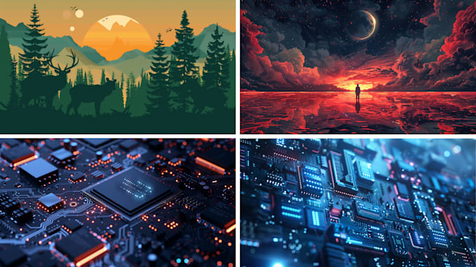 - Utilizing sophisticated AI tools, I will generate original and compelling art based on your detailed instructions. From character concepts to conceptual designs, I guarantee that every piece is one-of-a-kind and visually impactful.