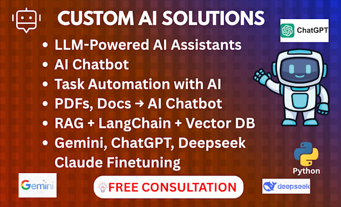 I am a developer specializing in AI chatbot solutions utilizing LangChain, RAG CHATBOTS, OpenAI, DeepSeek, Gemini, and Streamlit, ideal for converting your documents or databases into robust, interactive assistants.