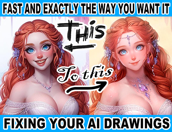If your perfect image is marred by flaws like extra fingers, odd expressions, or distracting details, I can quickly and accurately retouch your AI-generated art at a great price, recognizing that human artistic input enhances AI creations. (PLEASE ALWAYS CONTACT ME BY CHAT BEFORE PLACING AN ORDER).