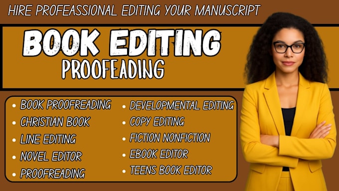 - Editing for books and manuscripts (both fiction and nonfiction)