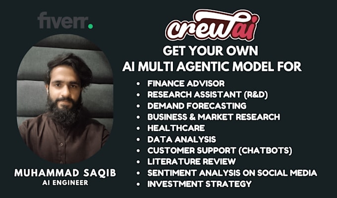 I develop AI Multi-Agent Models, robust systems comprising several specialized agents built using frameworks like CrewAI or AutoGen, which collaborate to address intricate challenges including Research and Development (R&D), Financial Advisory, Business Automation & Strategy, Literature Review, Sentiment Analysis, Stock Prediction, Demand Forecasting, AI Agent Calling, and Web Scraping for real-time data acquisition, tasks that single-agent AI solutions typically cannot manage effectively.
