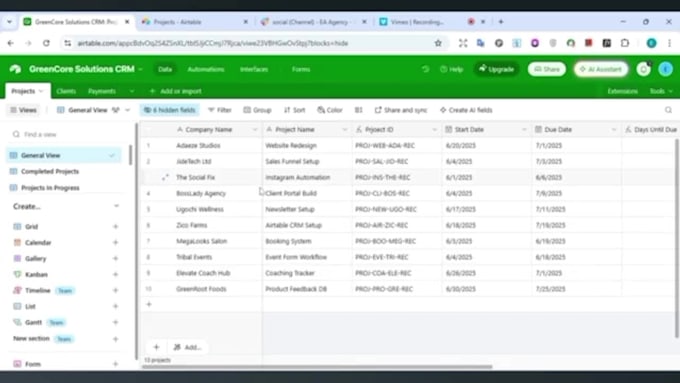 - Bespoke Airtable bases for managing projects, CRM and tracking leads, or monitoring inventory.